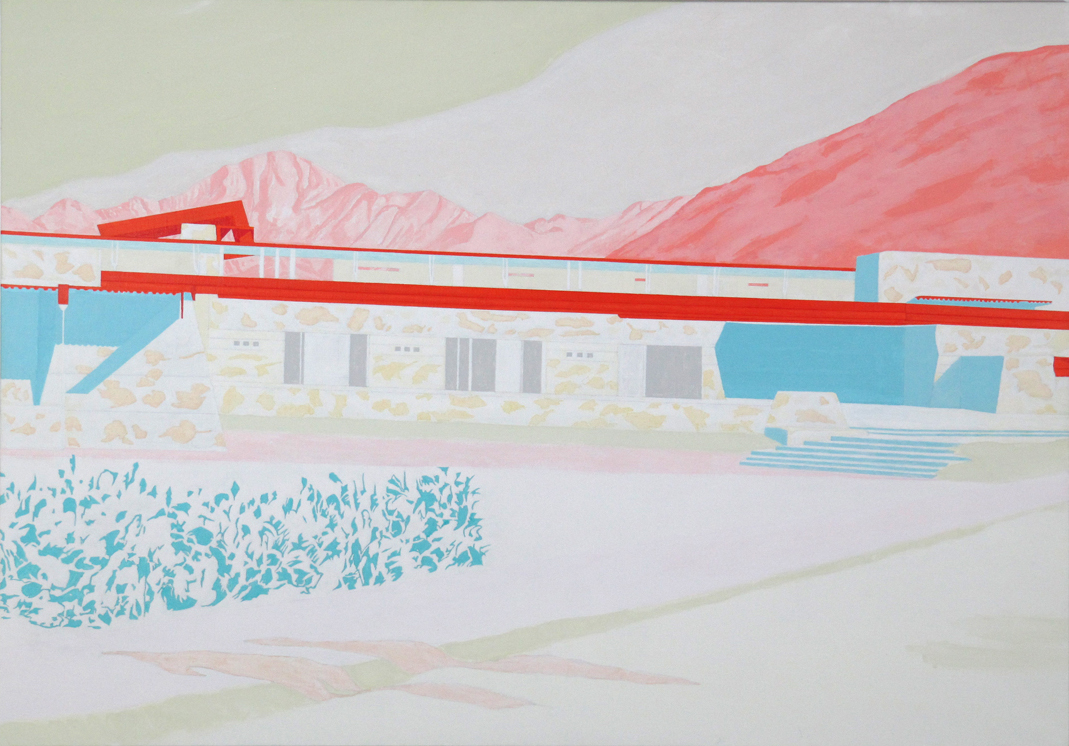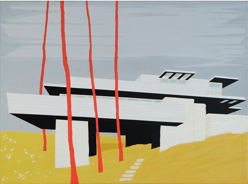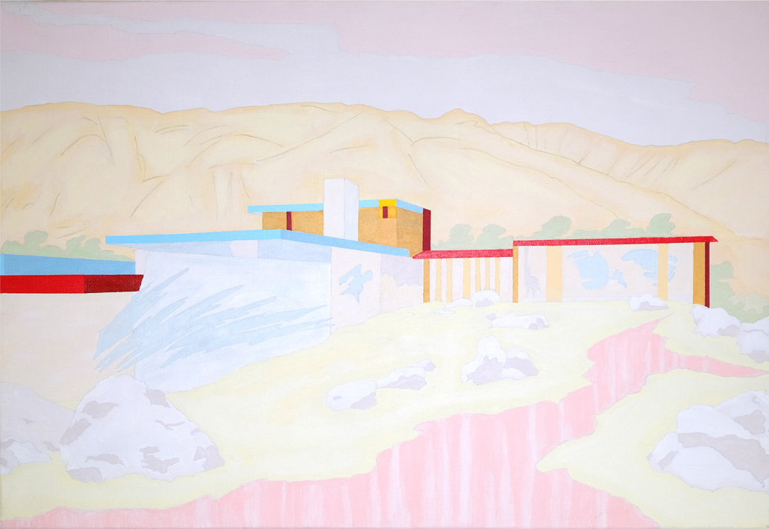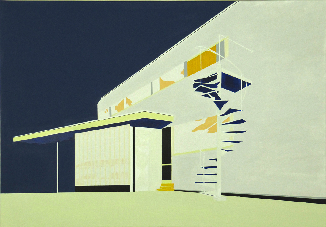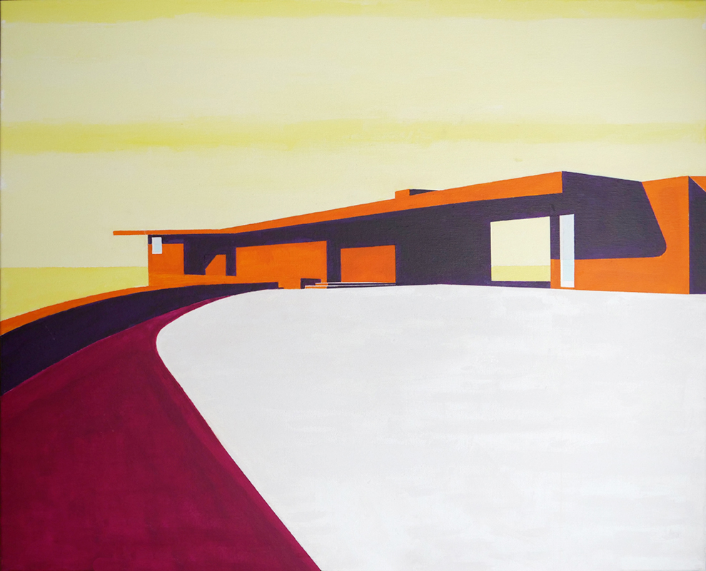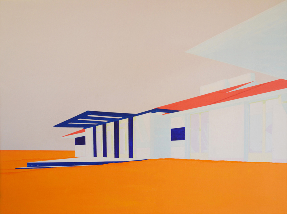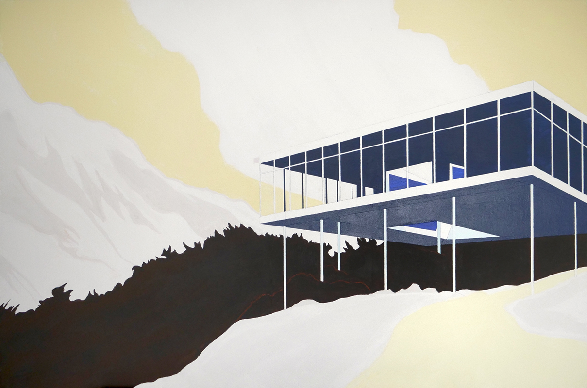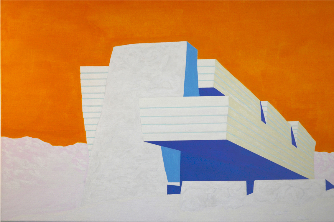 Ce travail a pour sujet la relation avec son environnement de l'architecture moderne en l'occurrence ce que l'homme a pu créer de plus pur dans un grand souci d'harmonie. Les architectures sont tirées de leur cadre historique et replacées dans un espace-temps indéfini, une nature quasi désertique et abstraite. Sous un ciel conscient de l'enjeu telles des organismes vivants, elles tendent à se relier à une terre séparée. Et c'est précisément la peinture par son traité lisse et plat qui permet de restituer enfin une unité perdue. Les tableaux prennent ainsi la forme d'une annonciation destinée à l'homme.