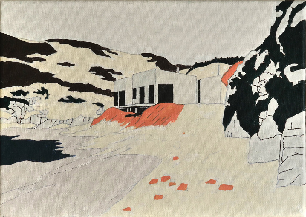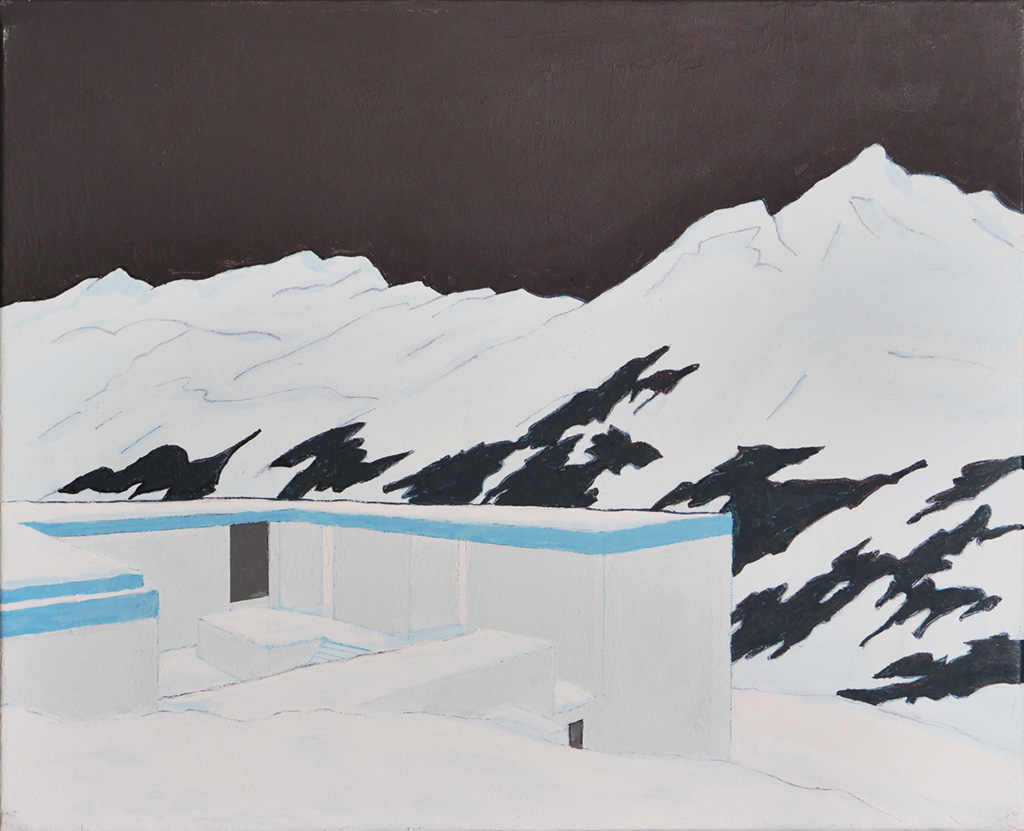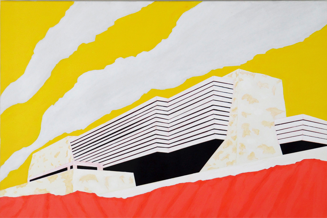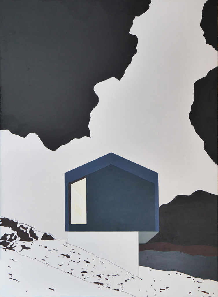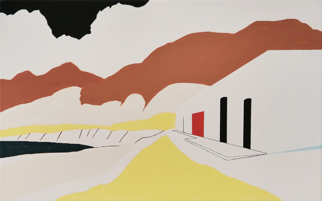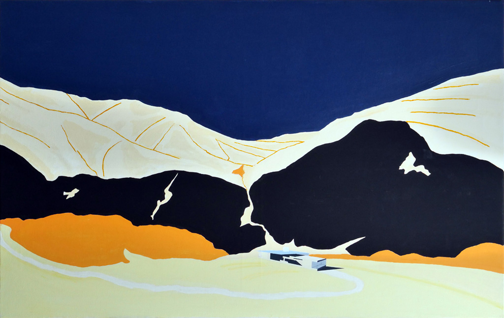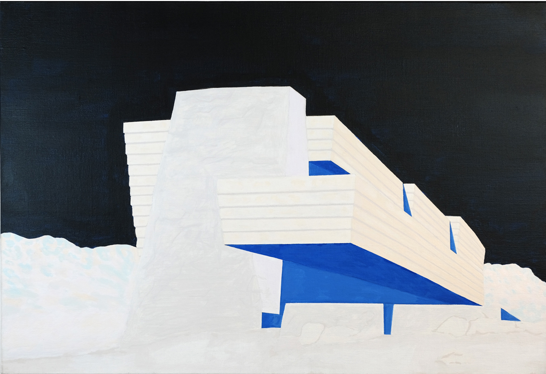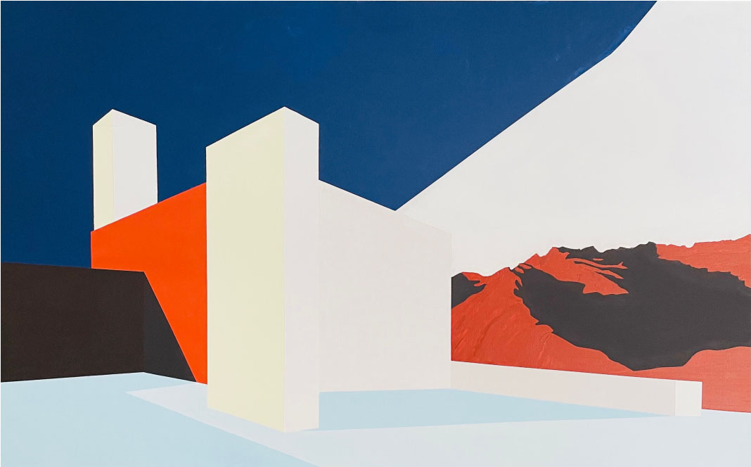 Ce travail a pour sujet la relation avec son environnement de l'architecture moderne en l'occurrence ce que l'homme a pu créer de plus pur dans un grand souci d'harmonie. Les architectures sont tirées de leur cadre historique et replacées dans un espace-temps indéfini, une nature quasi désertique et abstraite. Sous un ciel conscient de l'enjeu telles des organismes vivants, elles tendent à se relier à une terre séparée. Et c'est précisément la peinture par son traité lisse et plat qui permet de restituer enfin une unité perdue. Les tableaux prennent ainsi la forme d'une annonciation destinée à l'homme.