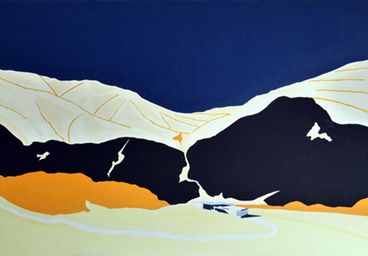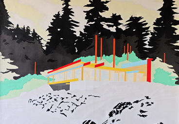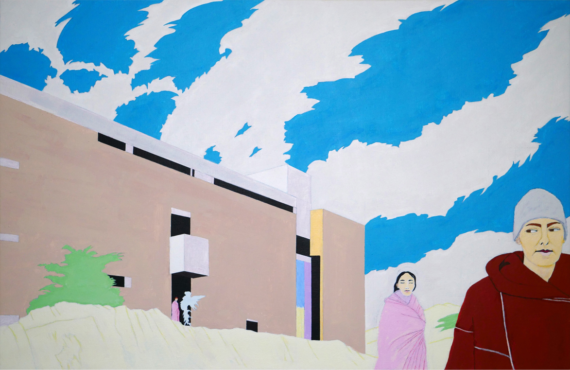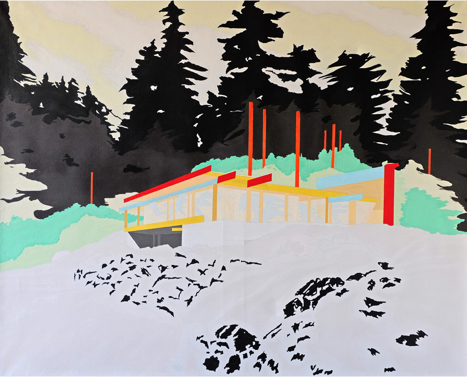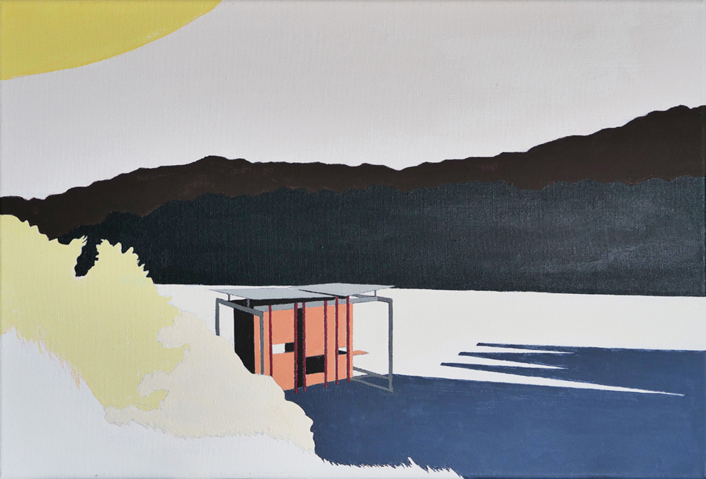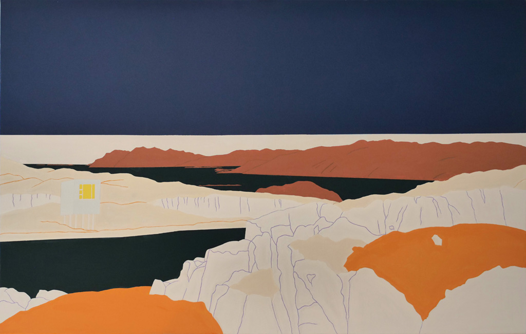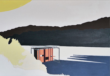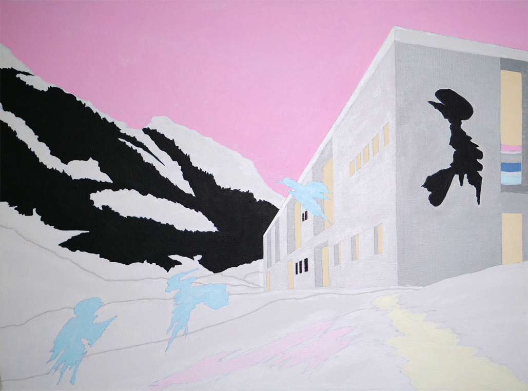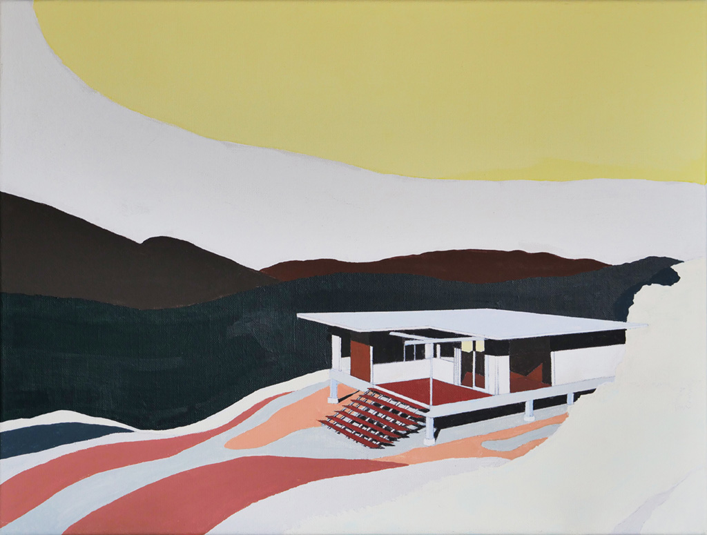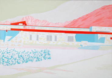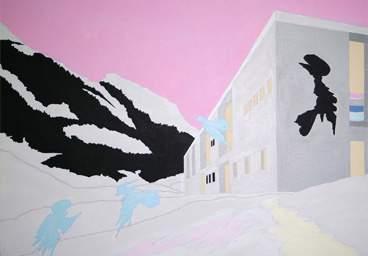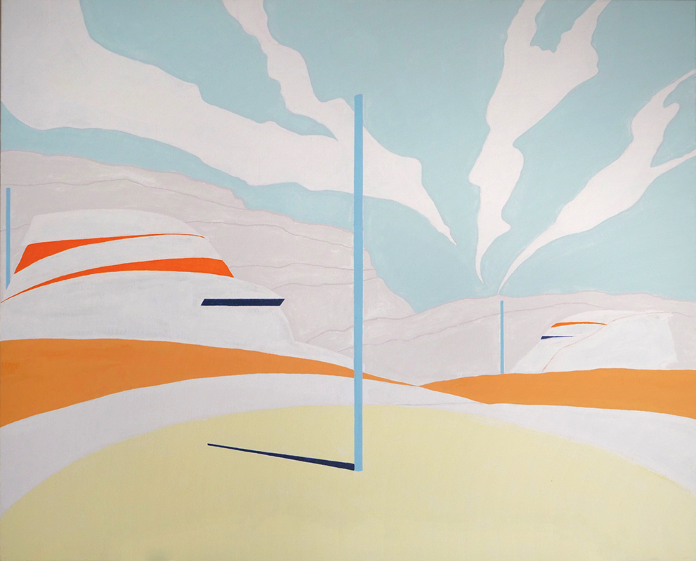 Ce travail a pour sujet la relation avec son environnement de l'architecture moderne en l'occurrence ce que l'homme a pu créer de plus pur dans un grand souci d'harmonie. Les architectures sont tirées de leur cadre historique et replacées dans un espace-temps indéfini, une nature quasi désertique et abstraite. Sous un ciel conscient de l'enjeu telles des organismes vivants, elles tendent à se relier à une terre séparée. Et c'est précisément la peinture par son traité lisse et plat qui permet de restituer enfin une unité perdue. Les tableaux prennent ainsi la forme d'une annonciation destinée à l'homme.